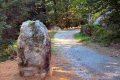 La stèle gauloise reconvertie en borne millaire romaine du carrefour de la D42 vers le sanctuaire des Osismes du Huelgoat
